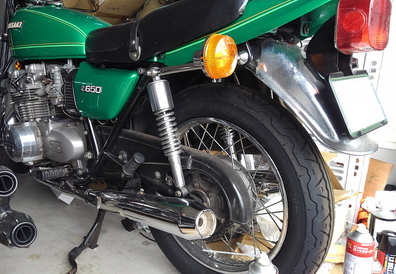 素人ガレージのZ650Bザッパーは、一見ドノーマルなんですが、微妙に違う部品が付いてます。そんな部品の一つにリアサスがあって、現在ついている部品はZ1000系のリアサスになってます。