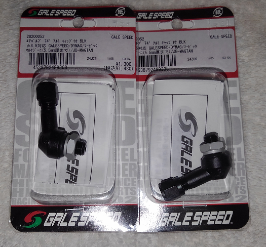 ゲイルスピードのバルブです。近所の量販店を3店舗廻ってやっと見つけました。11.5ミリのバルブだったら色んな種類がいくらでも売ってたけど、8.5ミリのバルブはコレしか手に入りませんでした。シルバーが良かったんだけど、無い物は仕方ない。しかし、そうとうマイナーなのね。