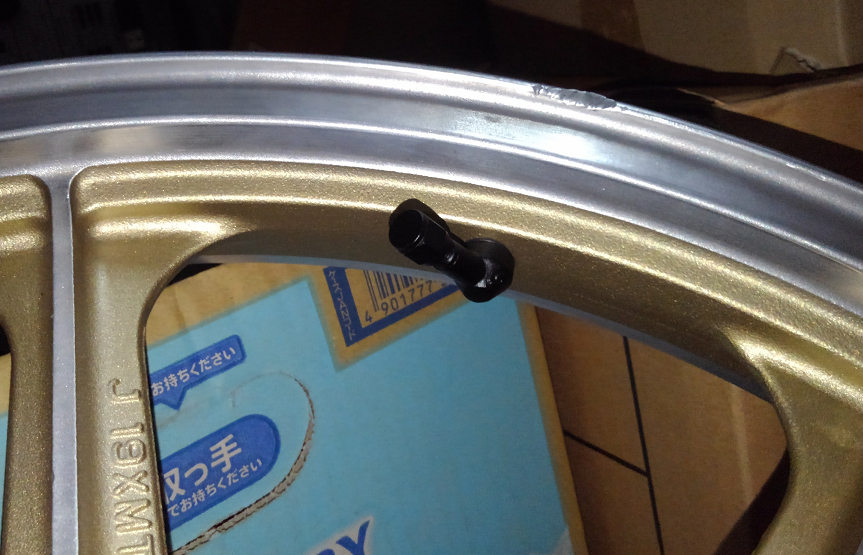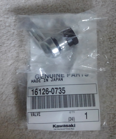 まずは、エアバルブを取り付けておきます。最近お気に入りのエアバルブは、カワサキ純正のH2用バルブで、ストックもあるんでそれを使おうと思いました。