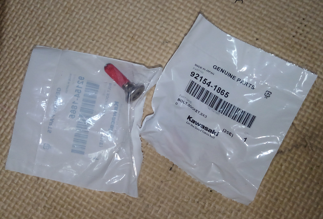 新品のボルトをとってみて驚いたのは、六角のサイズが違っててワンサイズ大きくなってました。これなら、工具が捻じれちゃうなんて事は無さそう。てか、そもそもそんなアホ力で締めるものじゃないよねぇ。