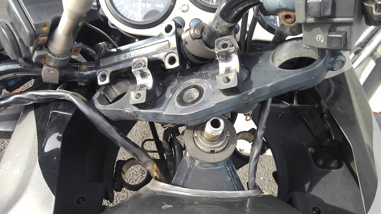 もうかなりの距離を走り込んでる通勤号のZRX1200Sですが、ステムベアリングに段が出てきたようでハンドルが引っかかるようになってきました。直進の所でハンドルが引っかかるんで、微妙なハンドル操作が難しくて乗りにくくて仕方ないので、涼しくなってきたことだし交換します。