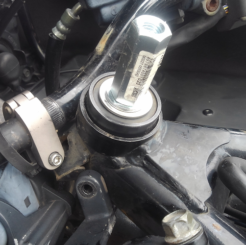 ステムのロックナットの締め具合は人によって色々だと思うけど、オレ様はわりとしっかり締めて渋めにしてます。それでも実際に乗ると車重とセルフステアの力の方が全然強くて渋さは感じません。