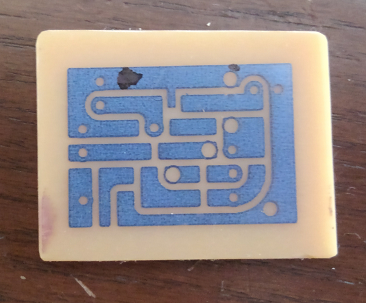 こんな感じで、生基盤にパターンを転写して基盤を作ります。