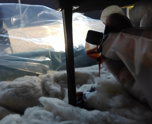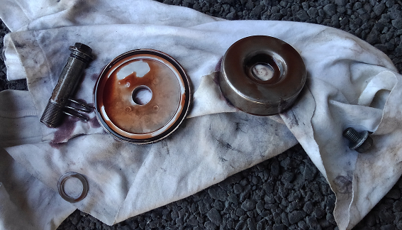 逆光なんで真っ黒く見えるけど、まだ元のオイルの赤色が残ってます。特別汚れてるって感じじゃないです。