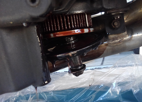 とりあえず、ドレンボルトを外してオイルを落とします。
