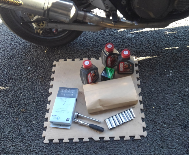 新しいオイルとエレメント、工具に廃油入れに、手を汚さないようにビニール手袋。あとはパーツクリーナーとかウェス位かなぁ?