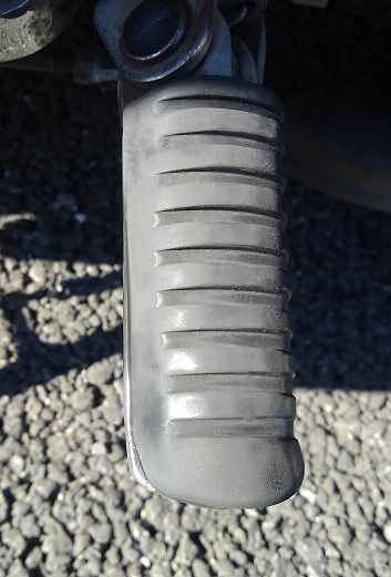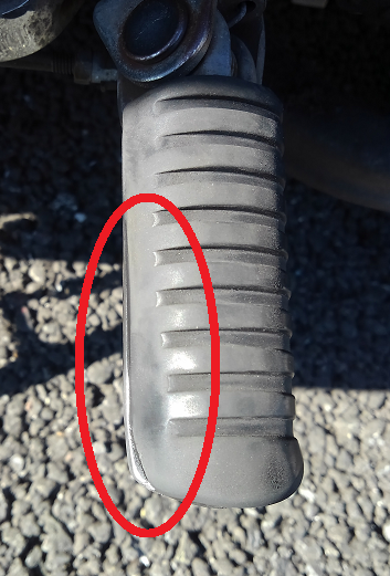 左ステップの赤丸部分がかなり減ってます。こっちはシフトペダルがあるんで、ゴムが減るんですよね。
