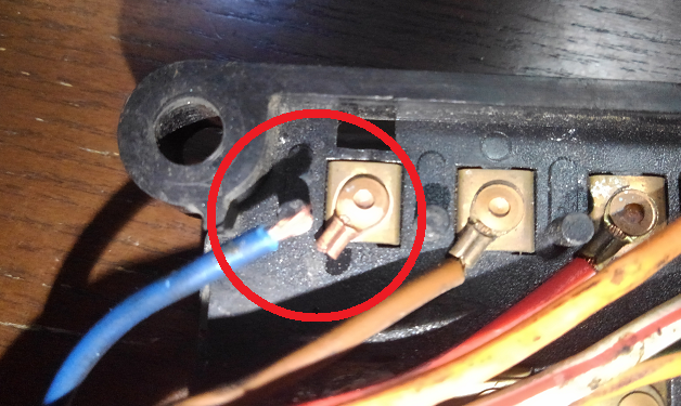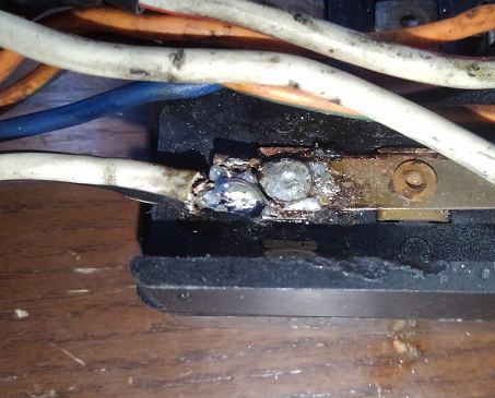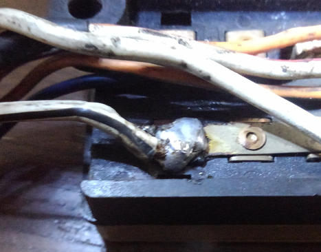 曲げ負荷のかかりやすい位置の配線だし、仕方ないでしょう。しかし、この配線はカシメなんですね。端子の交換というわけにはいかないので、半田付けしかないでしょう。