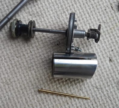 分解してニードルを取り出します。クリップでニードルの高さを調整できるんですが、今までは下から2段目で、ちょい濃いめにしてました。無番マフラーで抜けが良さそうだからちょい濃いめでいいかと思ったんですが、そうでもなかったみたいです。クリップを下から3段目(真ん中)に変えて組みなおしておきます。