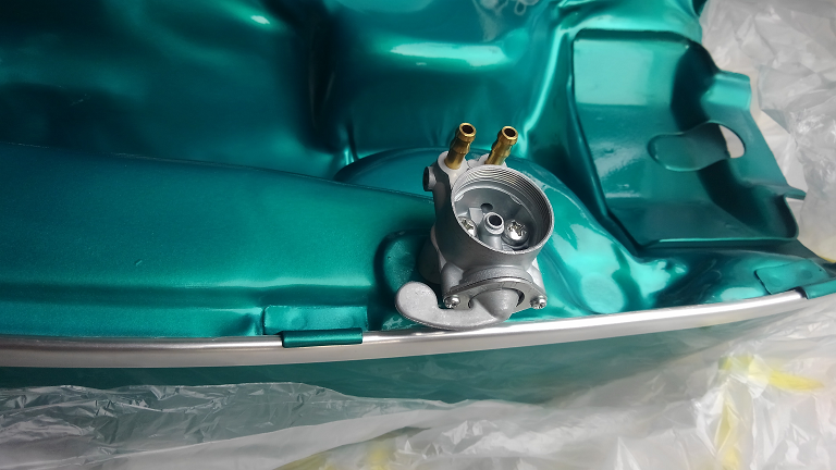 燃料コックをネジ止めします。この燃料コック、未だに新品がメーカーから出てるんですよ。ありがたや。