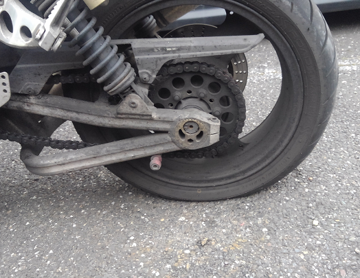 通勤号は普通の駐車場に頭から入れて駐輪してるんで、駐車場から出すのに押してバックするんだけど、パンクしてると押し歩きがクソ程重たいんですぐに分かります。そしてガックリきます。