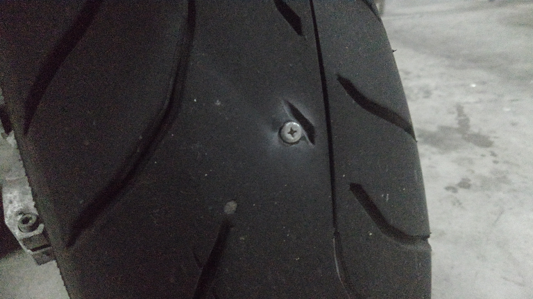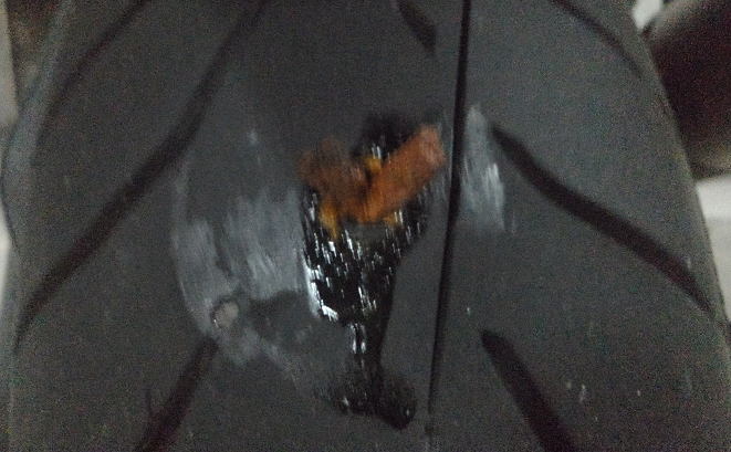 よくよく考えてみれば、朝パンク修理した時のショボい釘程度じゃ、タイヤがペッタンコになる程空気抜けないはずなんで、朝の時点で本命がいるって気付くべきでしたね。まぁ、朝は忙しいから……ね?(言訳)